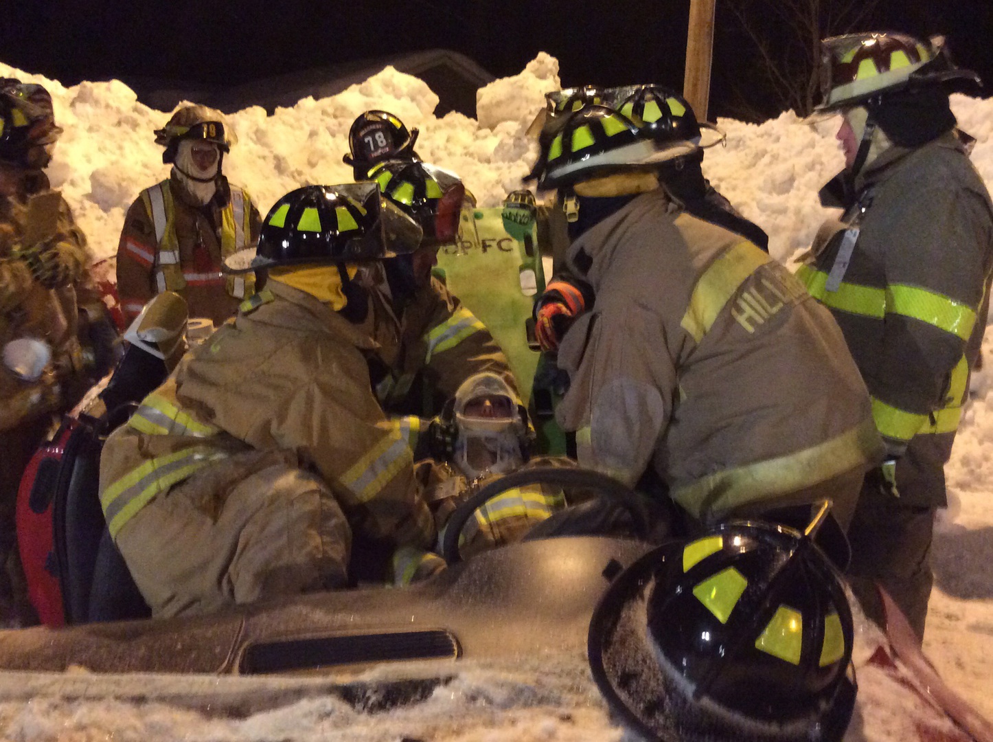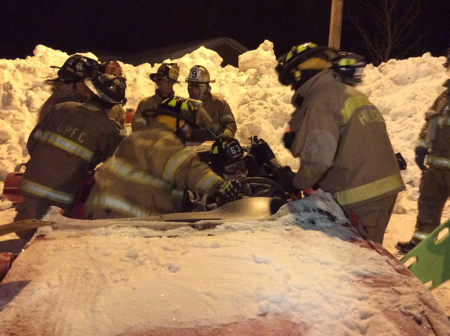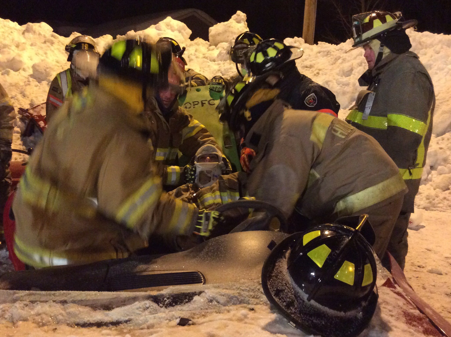 Chief Mrguralski and his crew from Orchard Park Central demonstrate extrication techniques for the 2014-15 EMT Class at Hillcrest