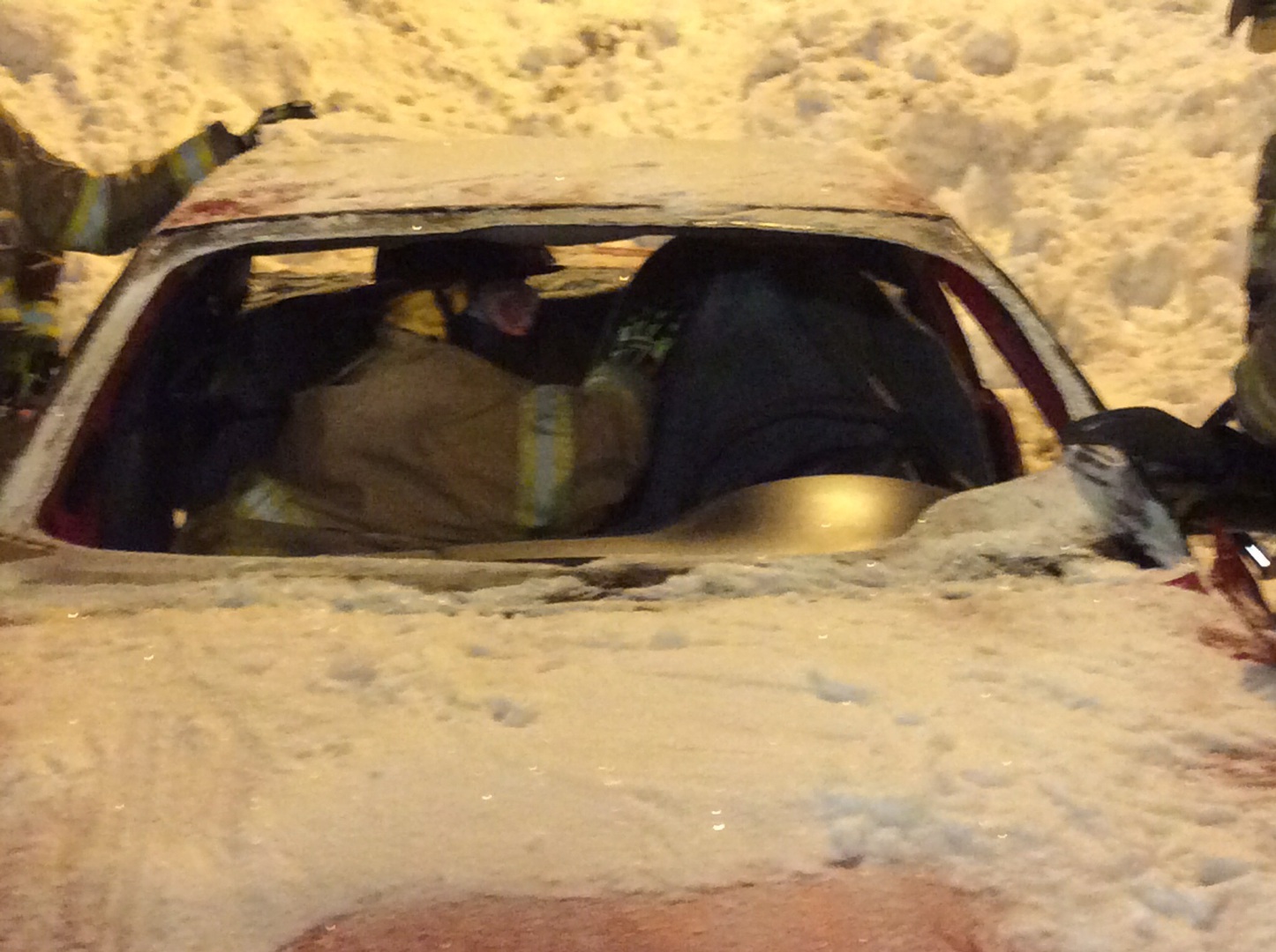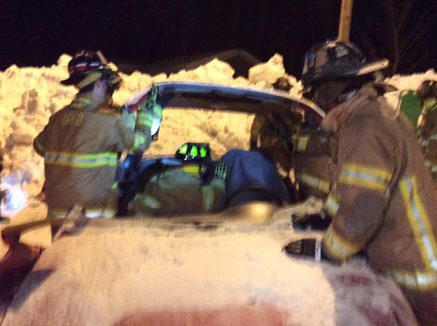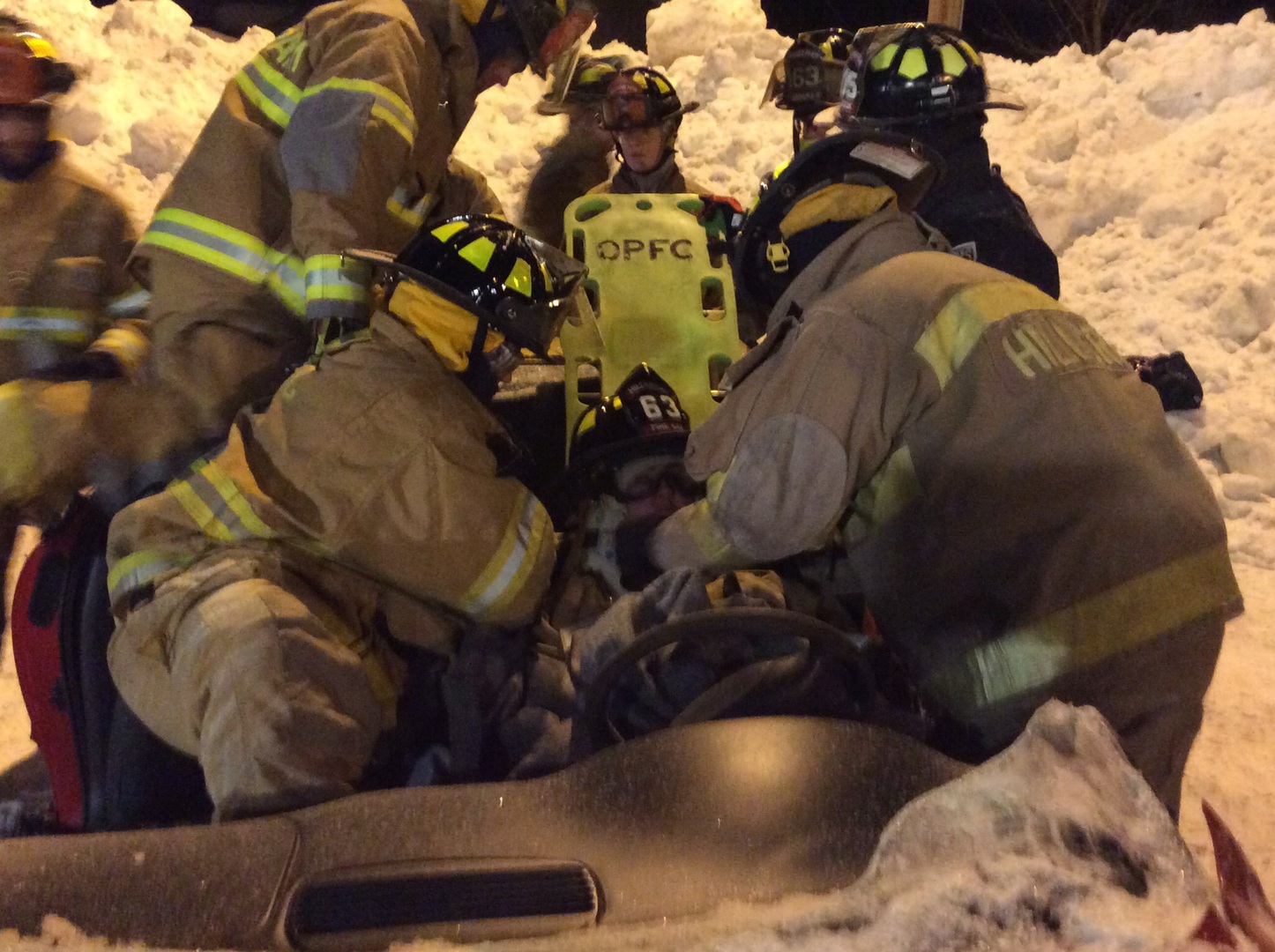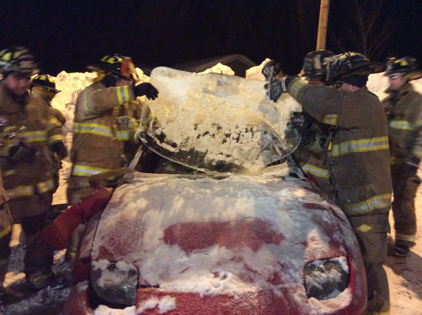 Chief Mrguralski and his crew from Orchard Park Central demonstrate extrication techniques for the 2014-15 EMT Class at Hillcrest