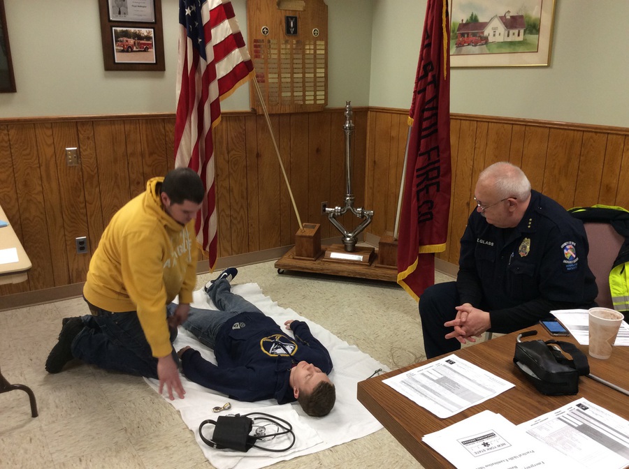 The Hillcrest Fire Company sponsored NYS EMT Class winding down after 6 months of training. Students are practicing skills for their NYS Certifying State test to be held in March. These dedicated volunteers are attending the 166 hour state certifying class while fulfilling their volunteer duties, employment responsibilities and personal commitments.